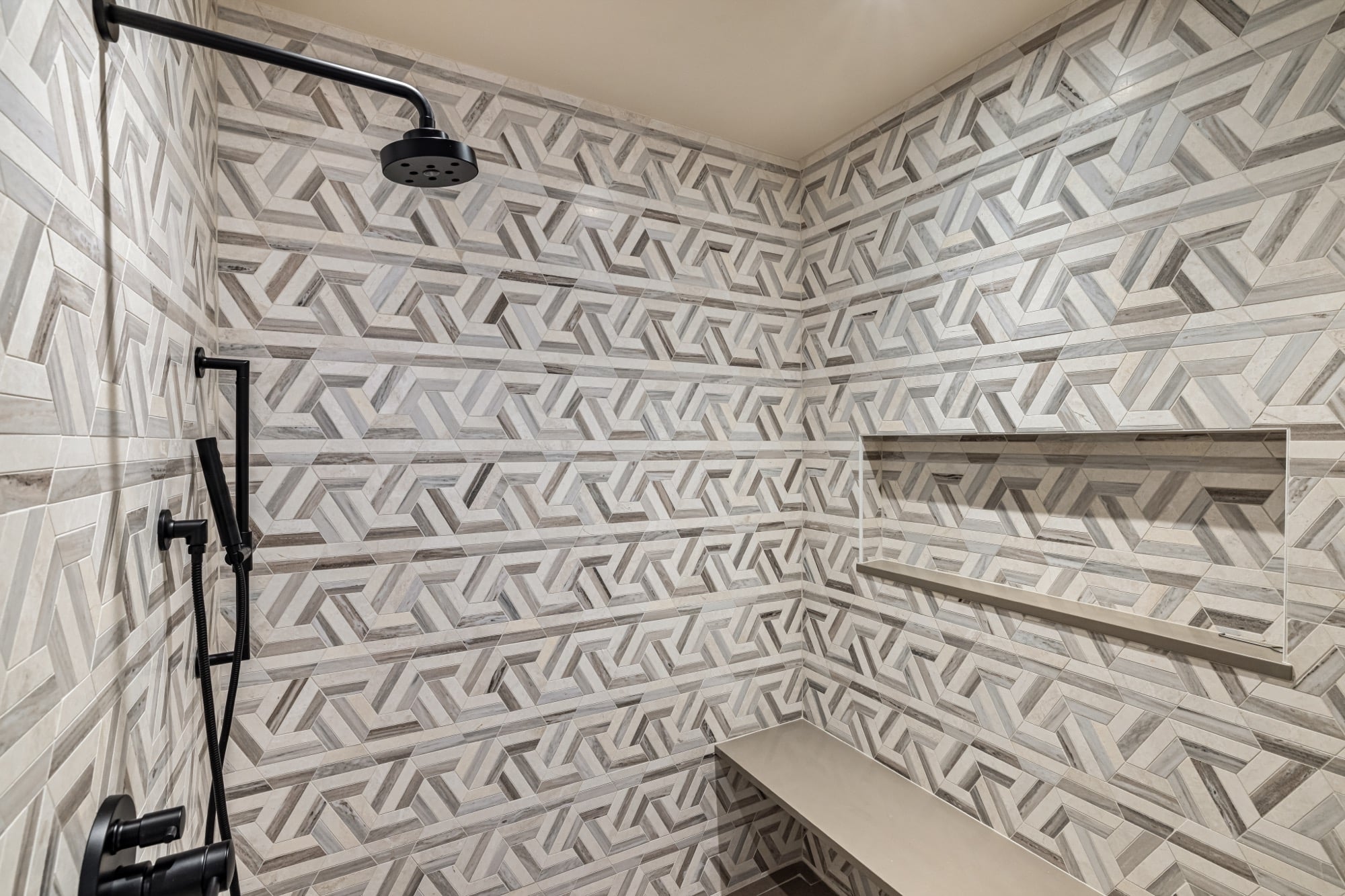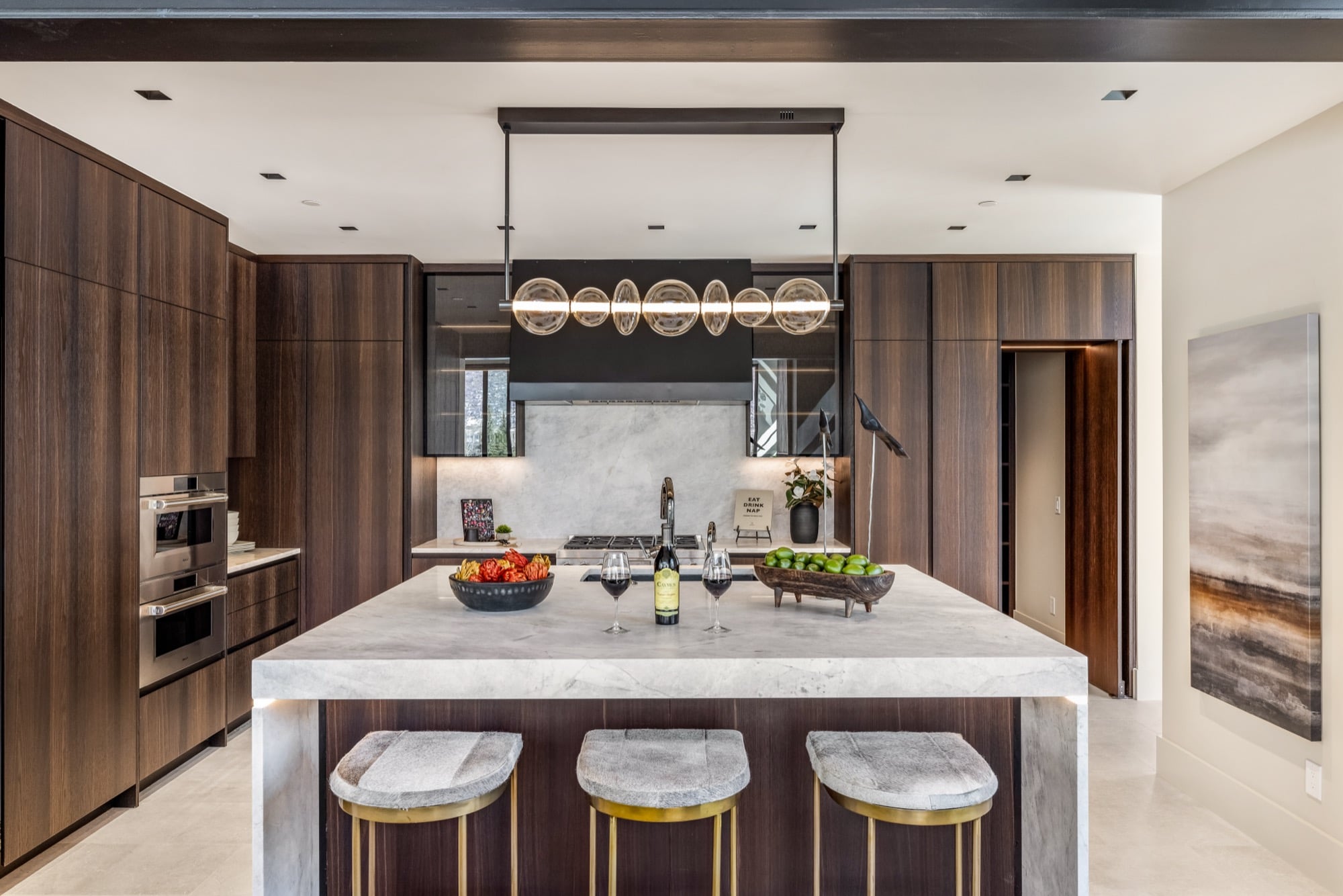 - High-end elegance with natural slab stone, adding refinement and texture to the design