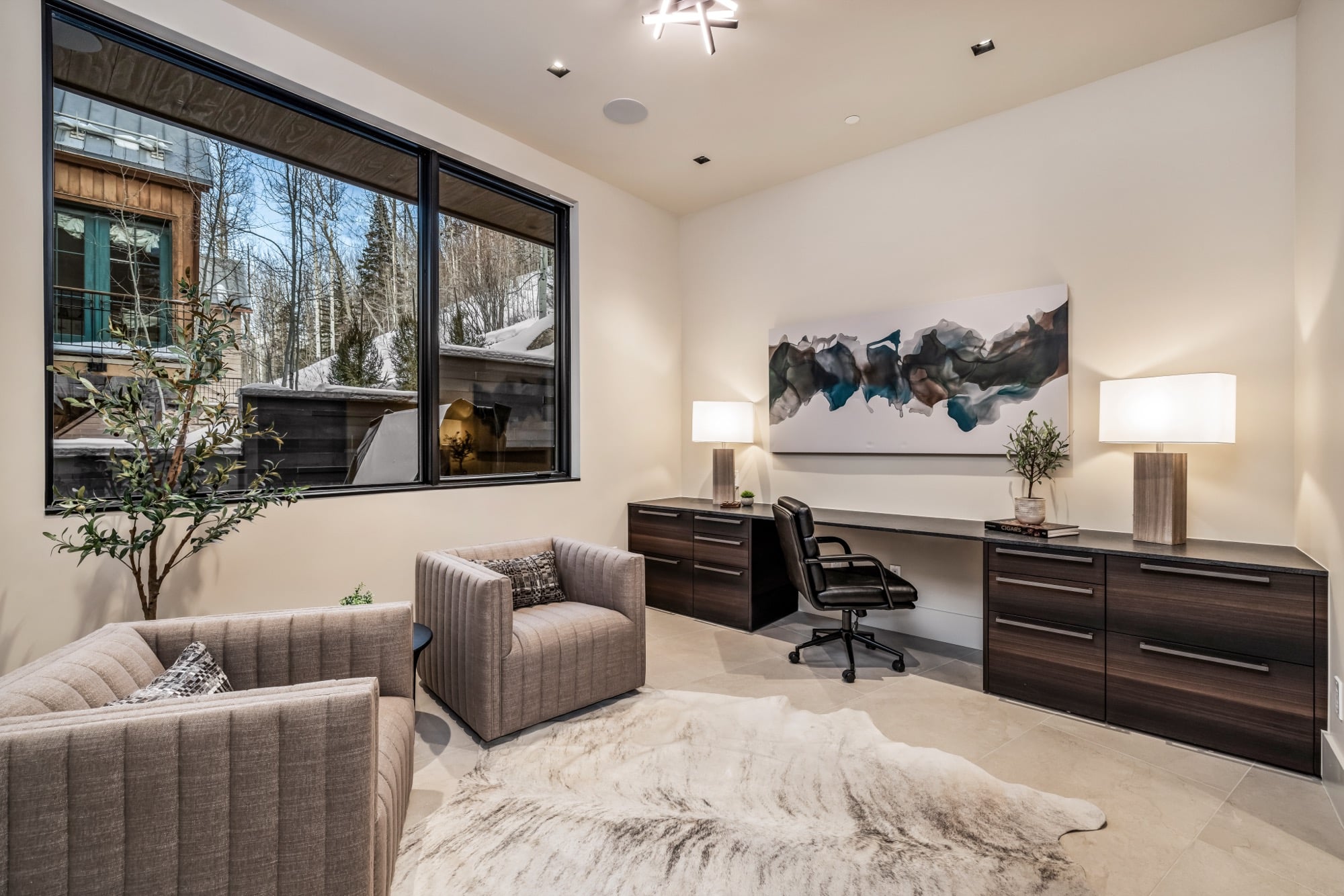 This meticulously designed home offers five bedrooms (plus office) and seven bathrooms, each thoughtfully crafted with high-end finishes, and a seamless connection to the surrounding Colorado landscape. The great room, with its soaring ceilings and floor-to-ceiling fireplace, invites you to unwind in style while enjoying the spectacular views. The chef’s kitchen features state-of-the-art Wolf and Sub-Zero appliances, complemented by a large kitchen island and an open design that flows effortlessly into the formal dining room and great room. Expansive windows and sliding doors connect the interiors to the outdoor living spaces, which include heated patios and decks for year-round enjoyment.