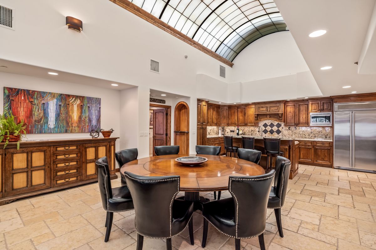 The home comfortably sleeps ten and has been recently refreshed. The design reflects an established European-influenced aesthetic with an emphasis on quality construction and natural materials.