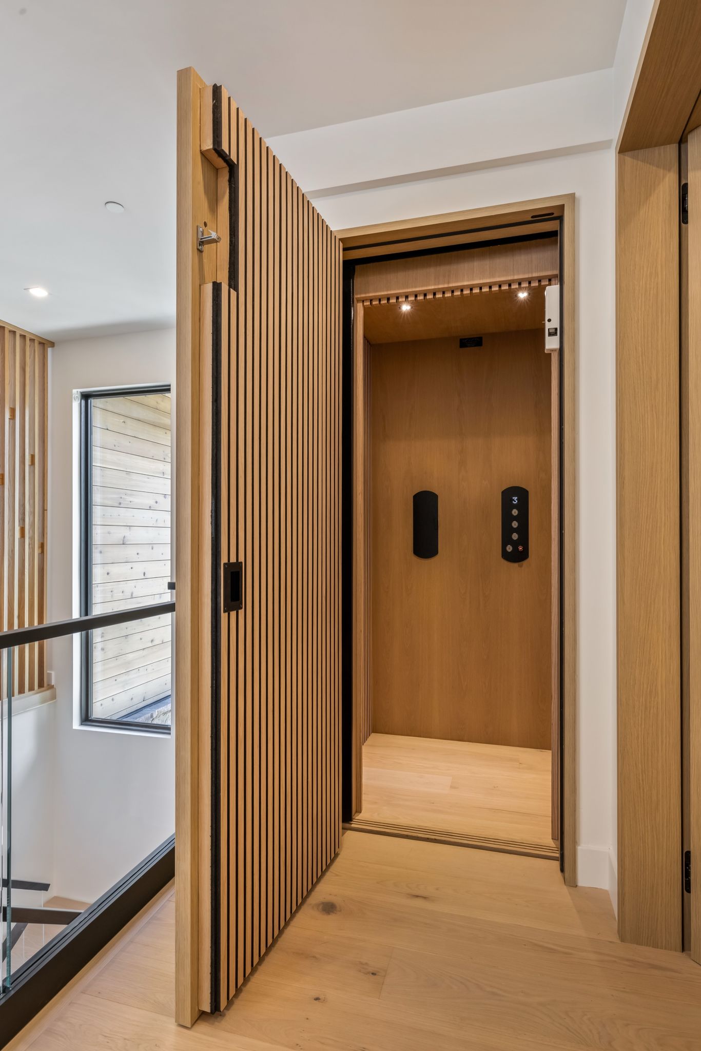 A private elevator connects the home without a single stair step, accessible directly from both the garage and front entry. The expansive lower level includes a recreation room with soaring ceilings, a game table and lounge space, a fluted wood wet bar, a beautifully finished wine room, and access to a heated patio with hot tub hookup. A bunk room on an adult scale adds flexibility and fun, with queen-sized lower bunks and thoughtful built-ins, making it ideal for children or additional guest accommodations.