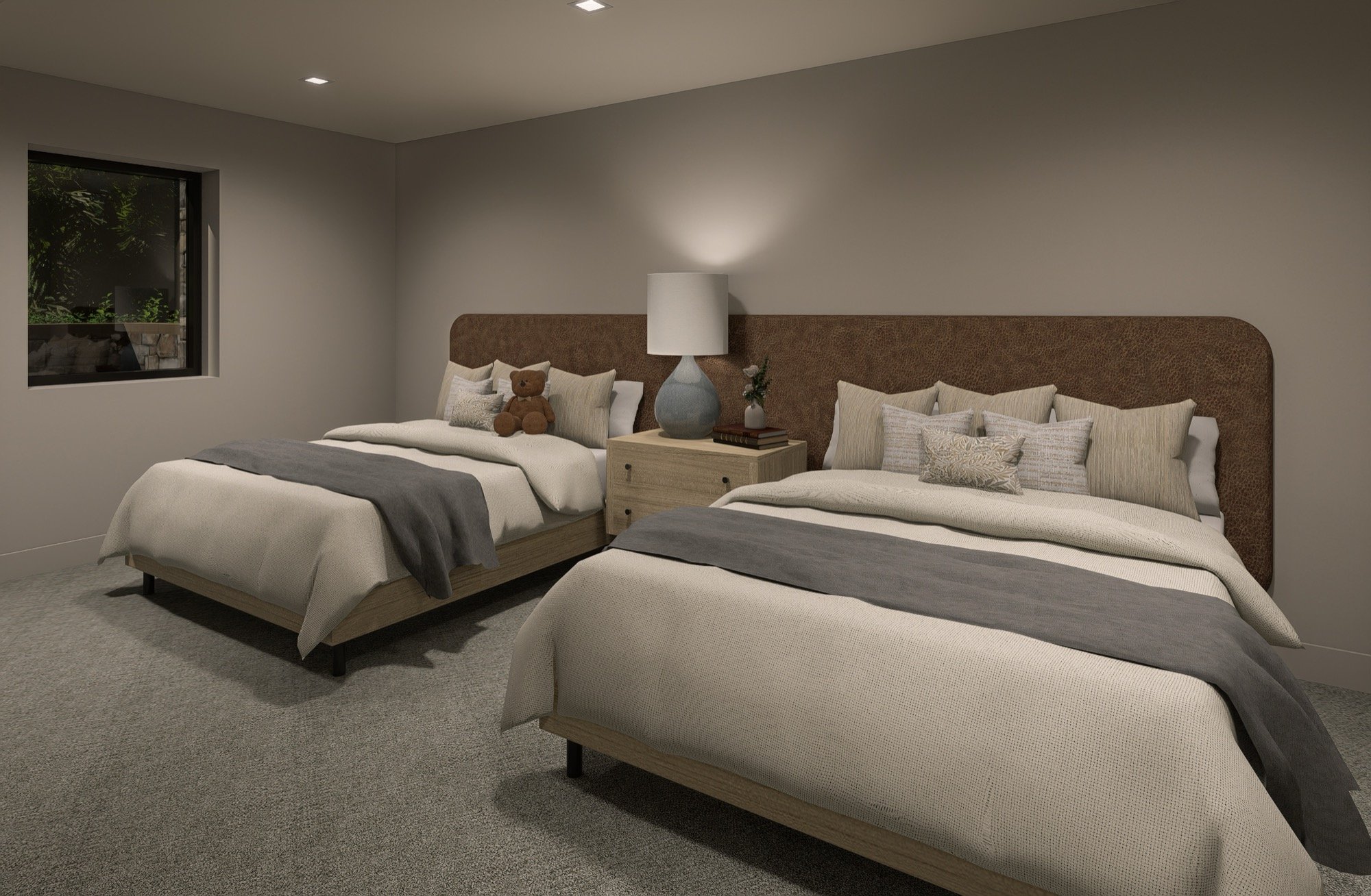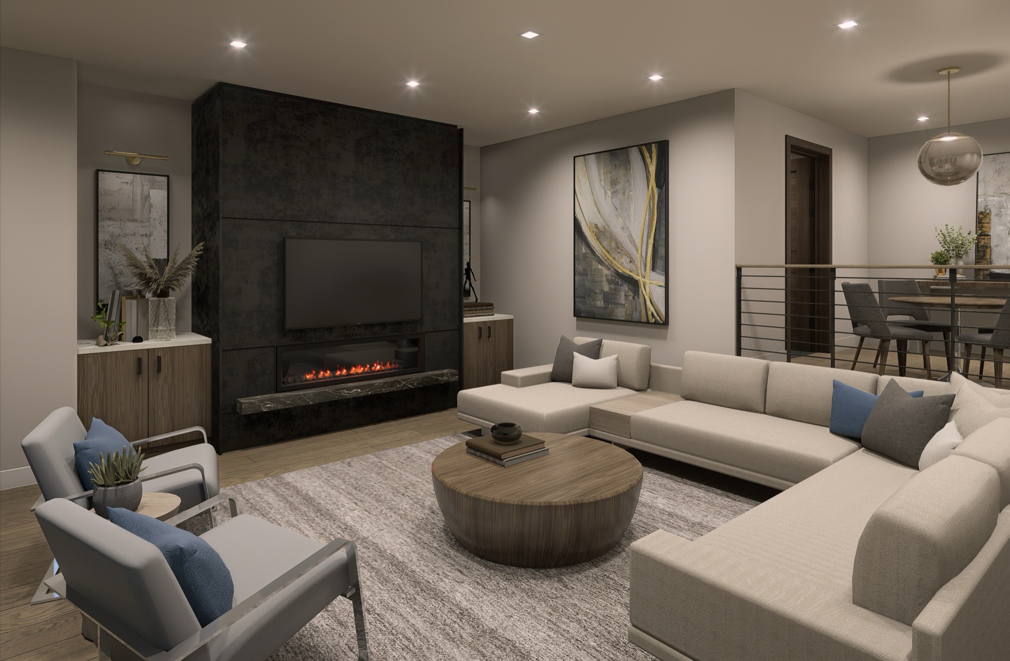 - Lower-level rec room adds additional flexibility to equally entertain and relax with direct access to the outdoor patio with a hot tub stone casing