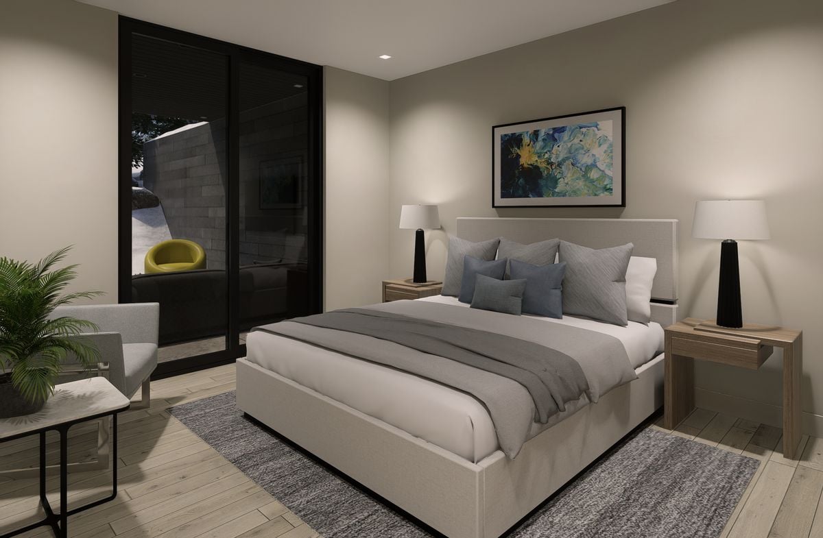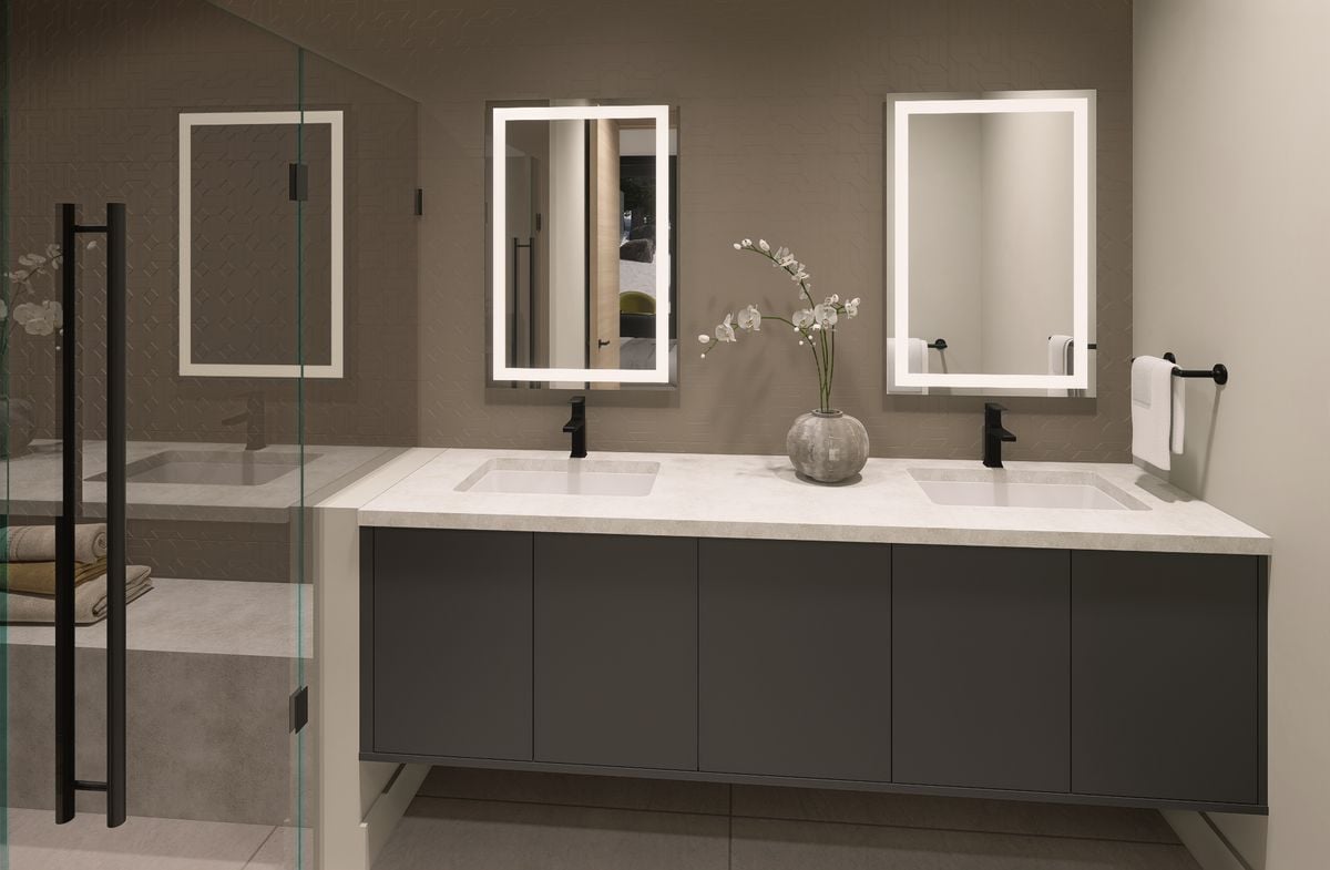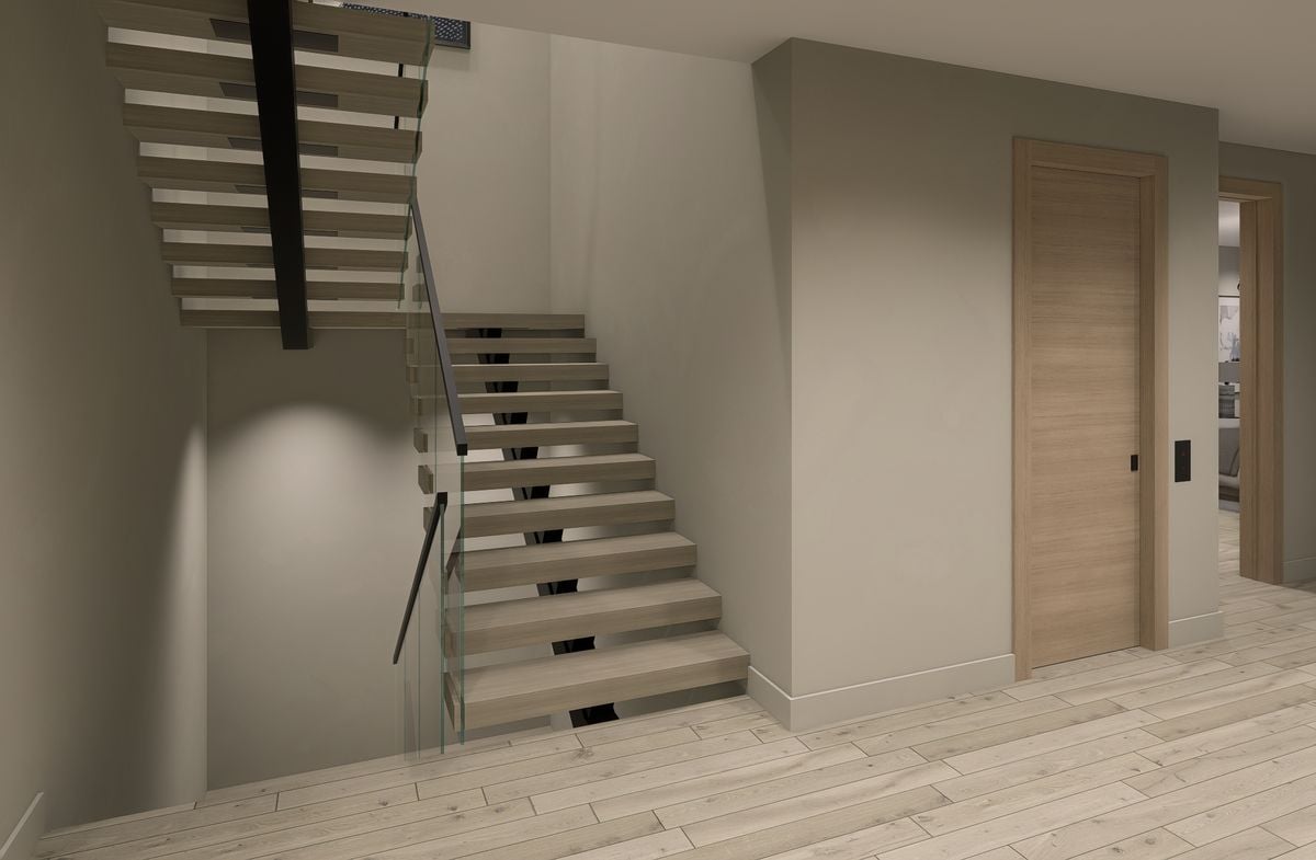 The primary suite is located on the main level, offering privacy, ease of living, and direct access to outdoor space. The spa-inspired primary bathroom features a steam shower and soaking tub, creating a retreat-like environment. All additional bedrooms are en-suite, providing comfort and privacy for both guests and family.