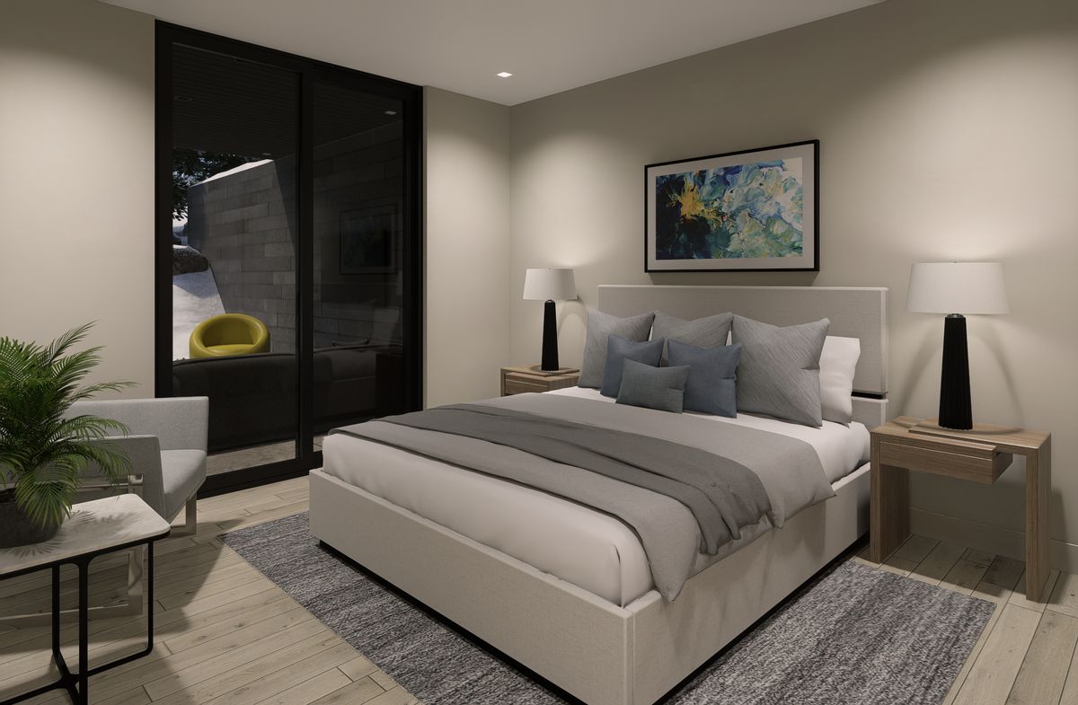 The primary suite is located on the main level, offering privacy, ease of living, and direct access to outdoor space. The spa-inspired primary bathroom features a steam shower and soaking tub, creating a retreat-like environment. All additional bedrooms are en-suite, providing comfort and privacy for both guests and family.