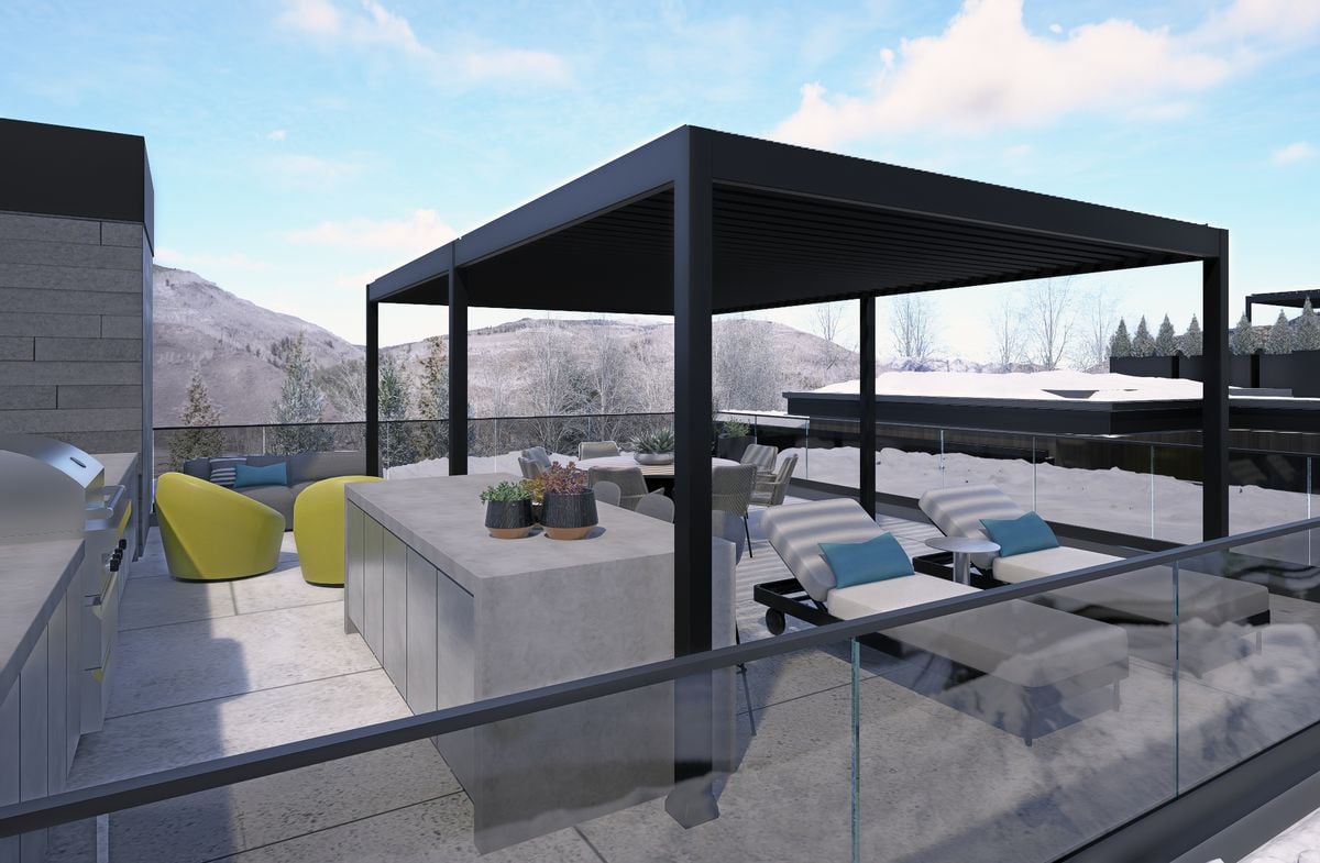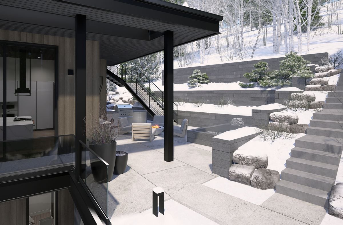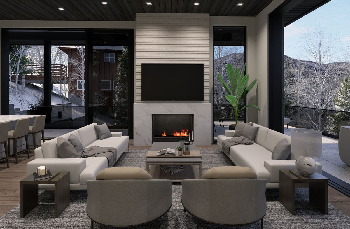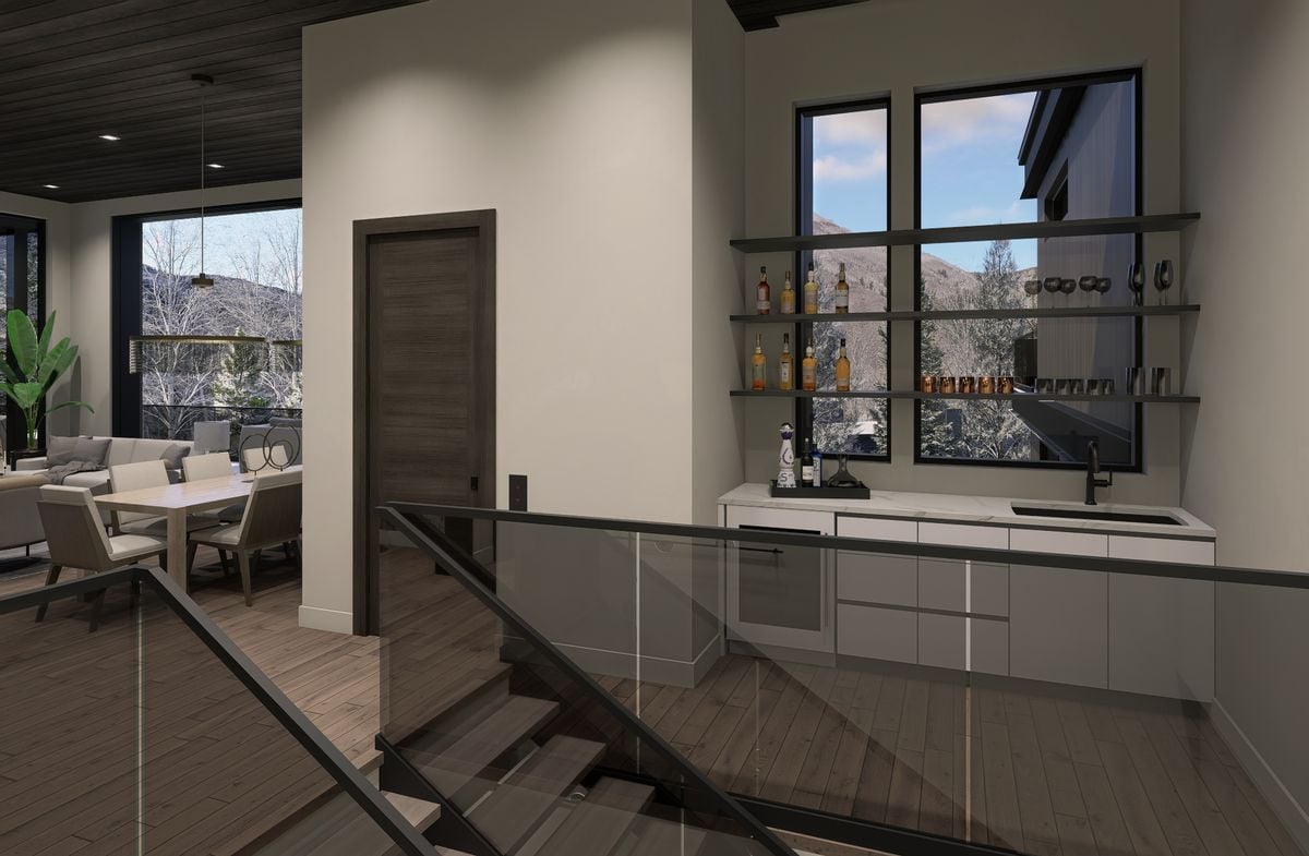 Integrated into the great room level is a standout architectural feature: a private motorized exterior bar window. At the push of a button, the kitchen opens directly to the ski patio, transforming the main living space into a true après-ski experience in winter and an open-air extension of the home for summer dinners...