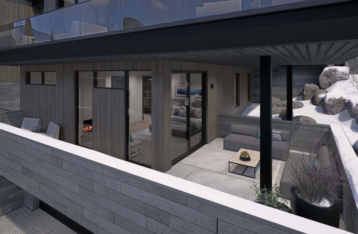 , fall gatherings, and year-round mountain living. With the skiway just beyond the patio, owners can ski home, step out of their boots on the heated outdoor bench, transition gear into custom exterior ski storage with integrated boot dryers and heaters, slip into slippers, and settle beside the firepit, relax in the adjacent hot tub, or gather at the bar on a beautiful spring day as skiers glide past on their final run. This seamless connection between the great room and outdoor living area creates a rare bar-to-patio experience ideal for entertaining and everyday mountain living.