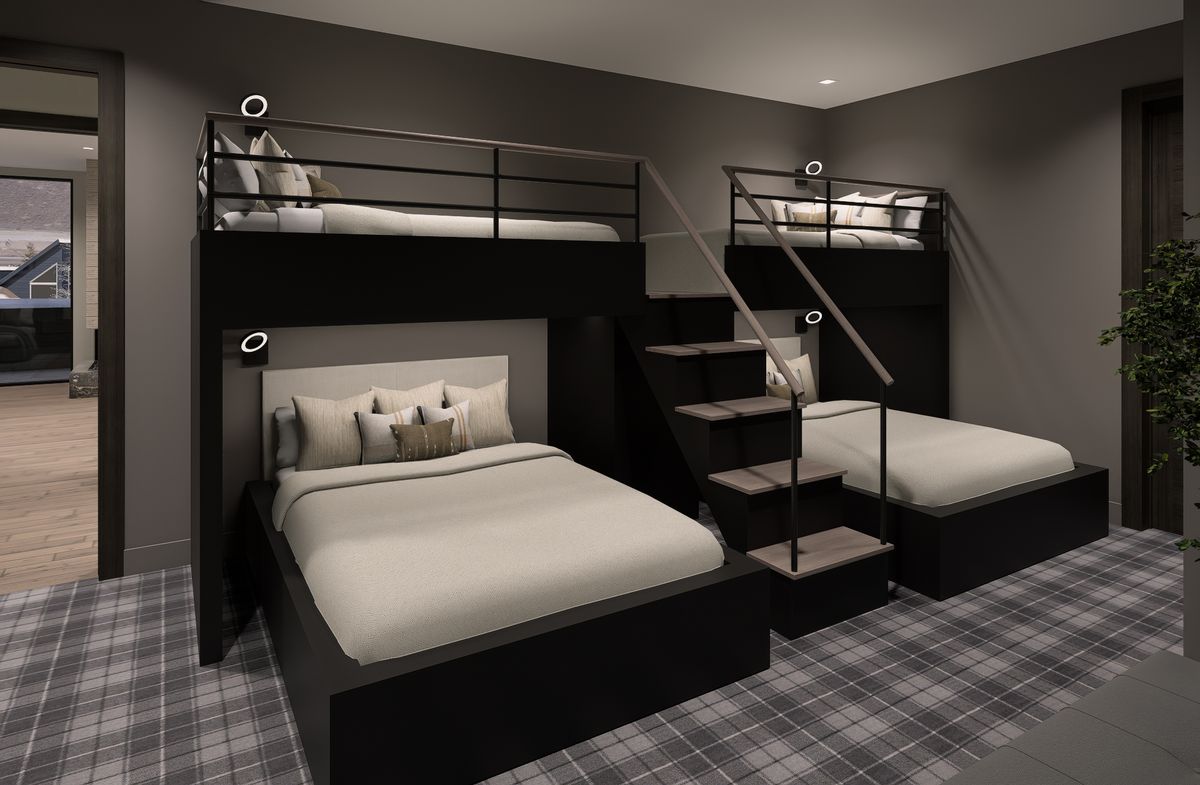 The residence includes a beautifully appointed primary suite with a fireplace, a private patio, and a spa-caliber bath. Additionally, both primary closets feature motorized drop-down hanging rods, increasing linear storage by approximately 50% for a meaningful upgrade in functionality. Four additional en-suite guest accommodations, including a thoughtfully designed bunkroom, offer flexible accommodations for families and visitors.